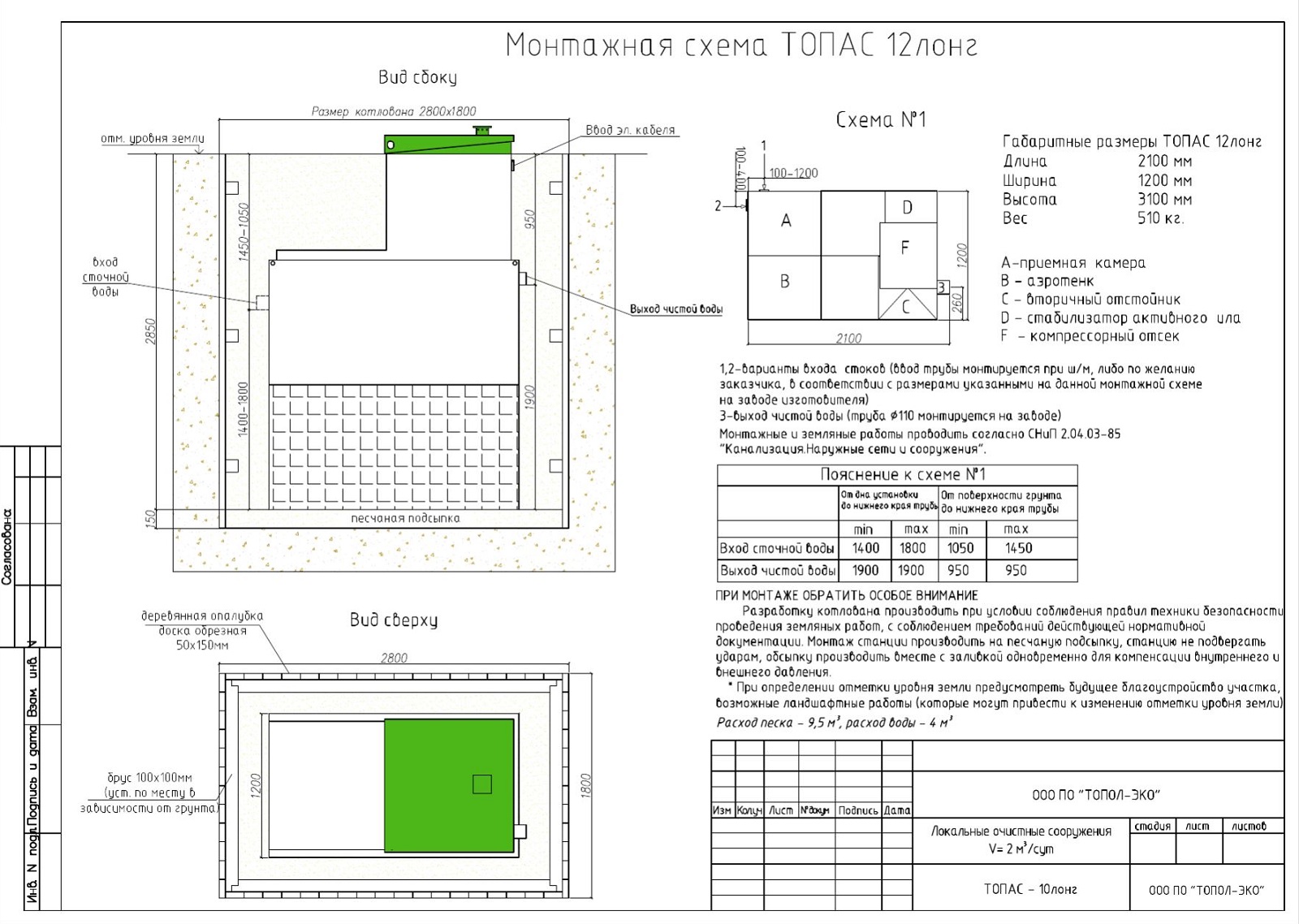 | Производительность | 2,2 м3/сут. |
